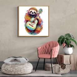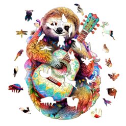 The sloth, a fascinating arboreal mammal, is recognized for its unhurried lifestyle and unique adaptations. With a slow, deliberate pace and a perpetual smile on its face, the sloth navigates its treetop habitat with ease. Characterized by its shaggy fur, clawed hands, and distinctive facial markings, the sloth spends the majority of its time hanging upside down from branches, conserving energy. Despite its leisurely demeanor, the sloth is remarkably agile when necessary, using its powerful limbs to move with surprising efficiency. Have you ever imagined the scene in which the sloth plays the guitar?