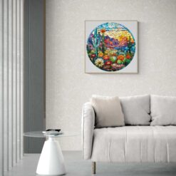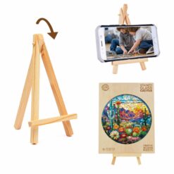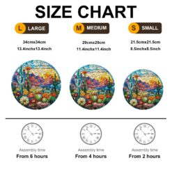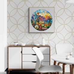 This stunning wooden jigsaw puzzle showcases a vibrant desert landscape, beautifully rendered in a stained-glass art style. Featuring towering cacti, blooming succulents, and a breathtaking sunset over rugged mountains, the design bursts with rich colors and intricate details. Each precision-cut wooden piece fits seamlessly together, offering an engaging and rewarding puzzle experience. Made from high-quality, eco-friendly wood, this puzzle is perfect for nature lovers, puzzle enthusiasts, and those who appreciate artistic craftsmanship. Once completed, it makes a striking decorative piece, bringing warmth and southwestern charm to any space.