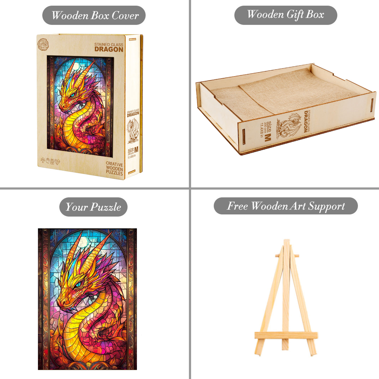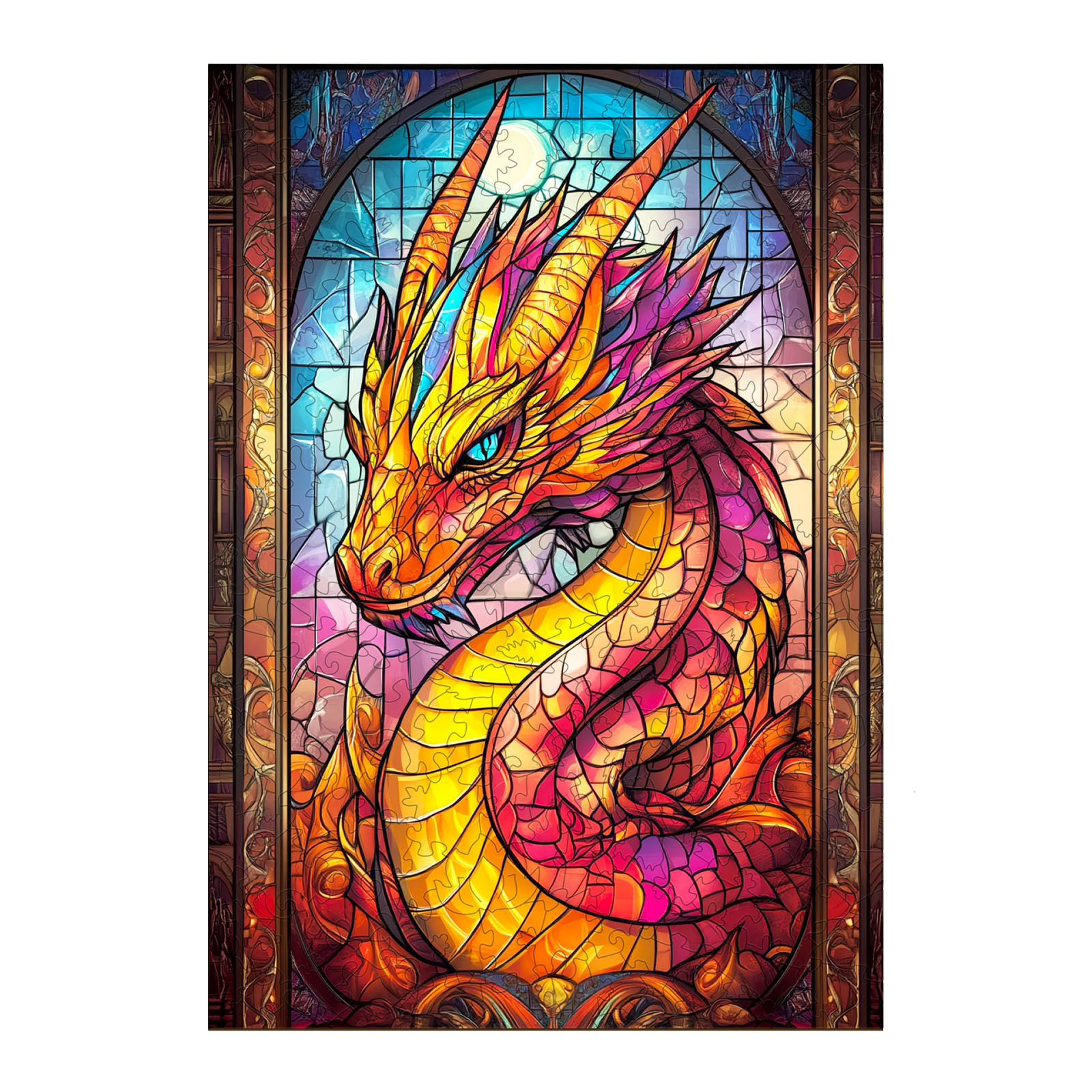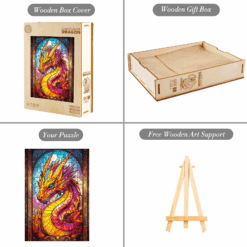 Experience the fiery brilliance of fantasy with the Kaayee Wooden Puzzle – “Stained Glass Dragon” edition. This stunning puzzle features an intricately illustrated dragon with vibrant hues of red, gold, and violet, set against a breathtaking stained glass-style backdrop. Crafted from premium wood, each laser-cut piece fits perfectly, creating a smooth and satisfying puzzle-building journey. Ideal for fantasy lovers, puzzle enthusiasts, and art collectors alike, this masterpiece is not just a puzzle—it’s a display-worthy work of art that brings mythical elegance to any space.