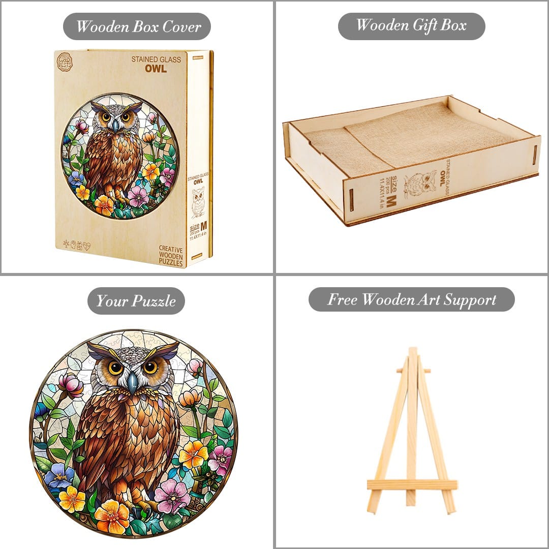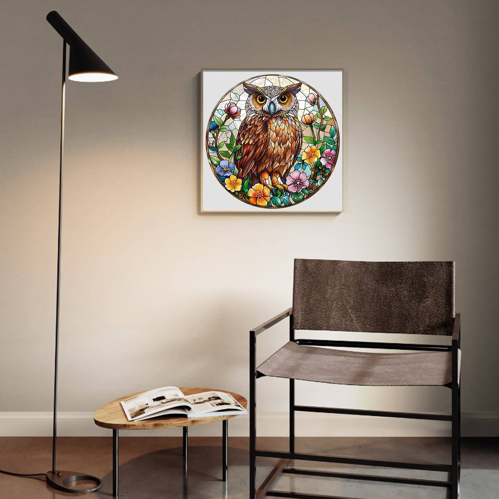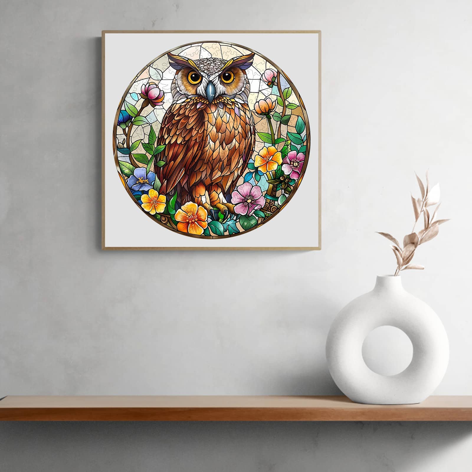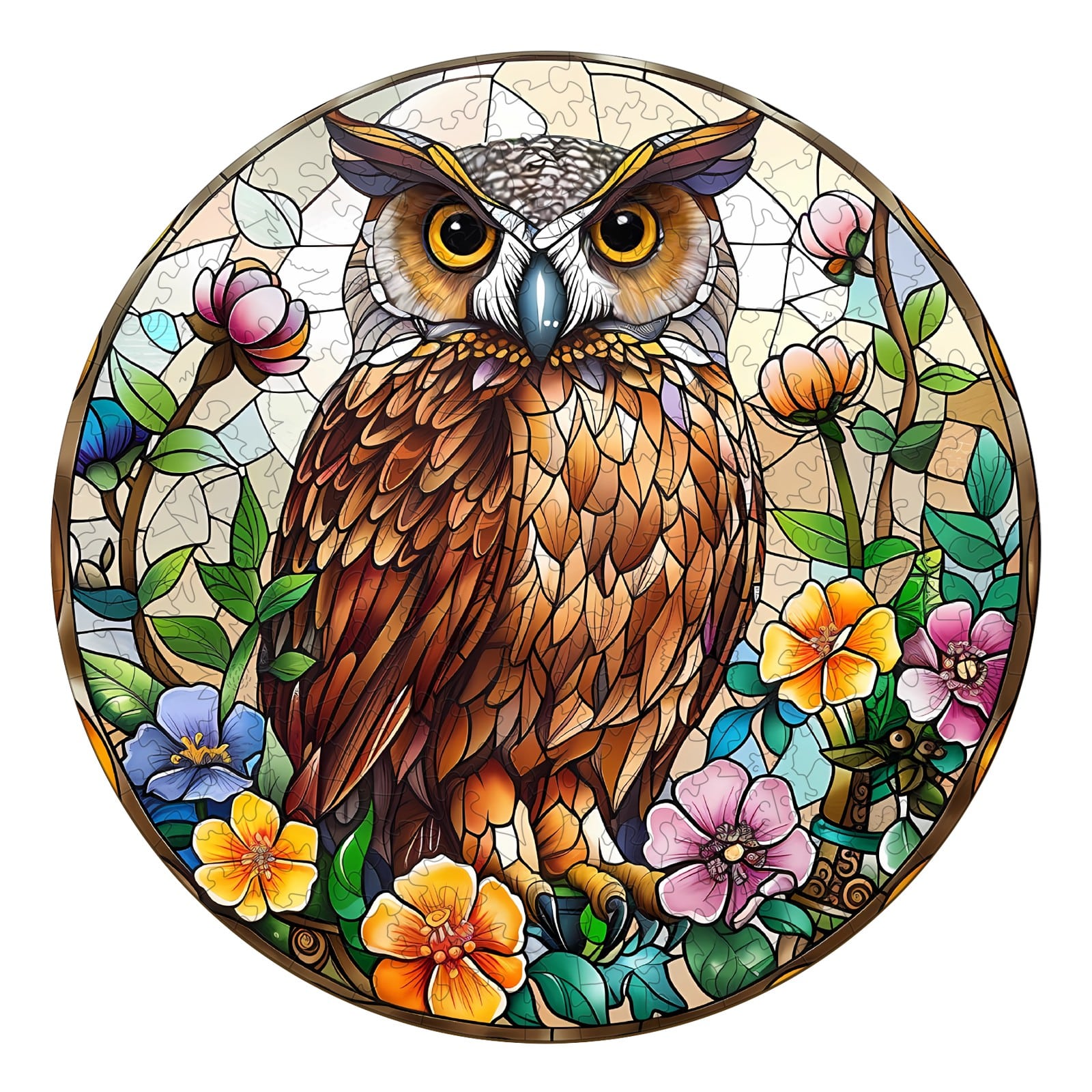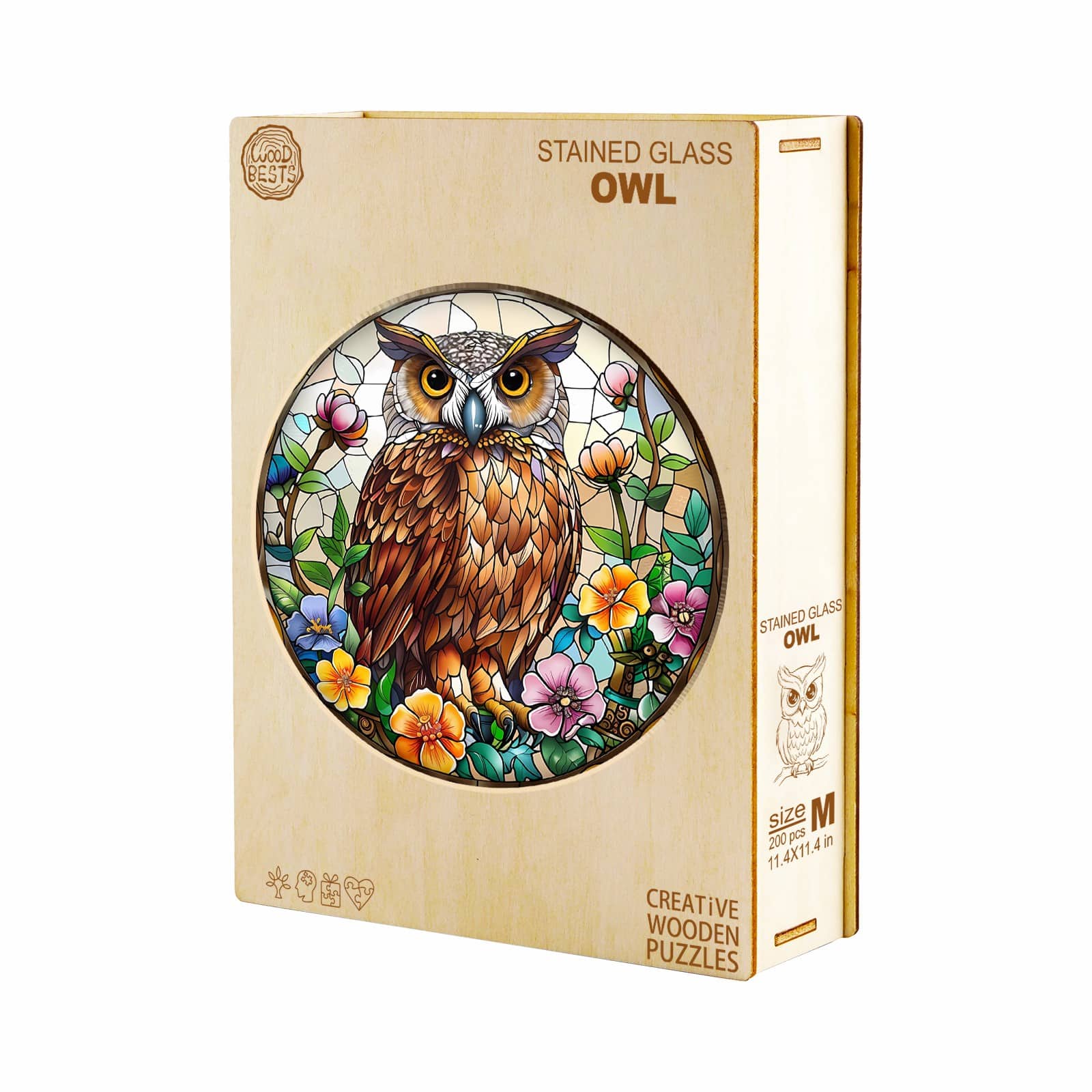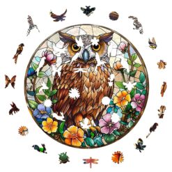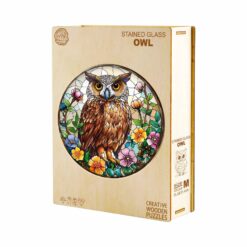 This stained glass owl puzzle combines the challenge of a jigsaw puzzle with the beauty of stained glass art, featuring a vivid and intricate owl design. Each piece is carefully shaped and colored to emulate the look of glass, creating a mosaic effect when assembled. The puzzle typically highlights the owl’s distinctive features, such as large eyes and detailed feathers, in a colorful, translucent style. Ideal for both puzzle enthusiasts and art lovers, the stained glass owl puzzle offers a satisfying and visually striking experience, resulting in a stunning piece that can be displayed as a decorative artwork