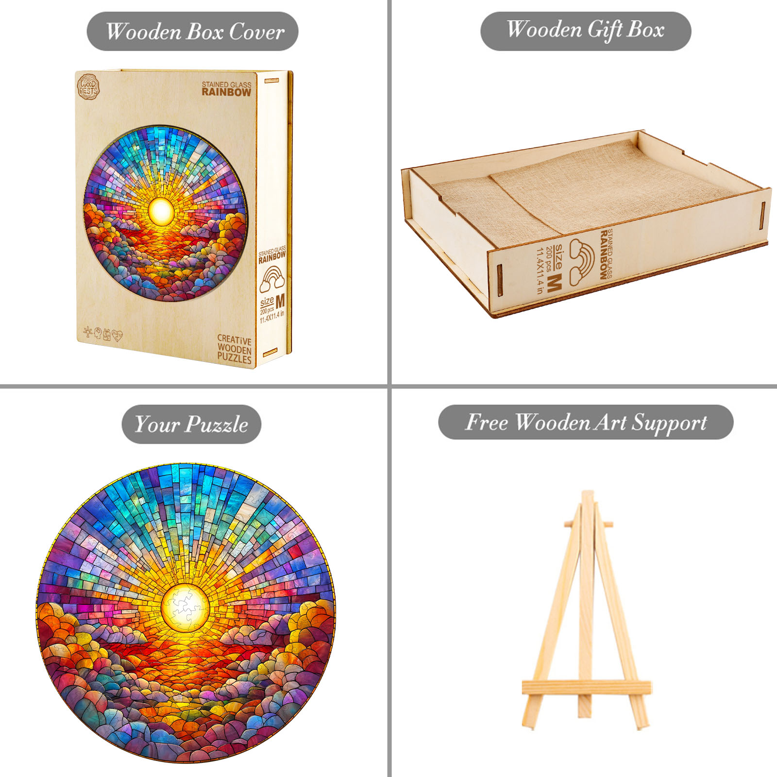 Wooden Jigsaw Puzzle –stained glass rainbow
