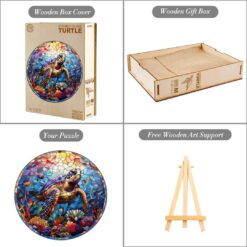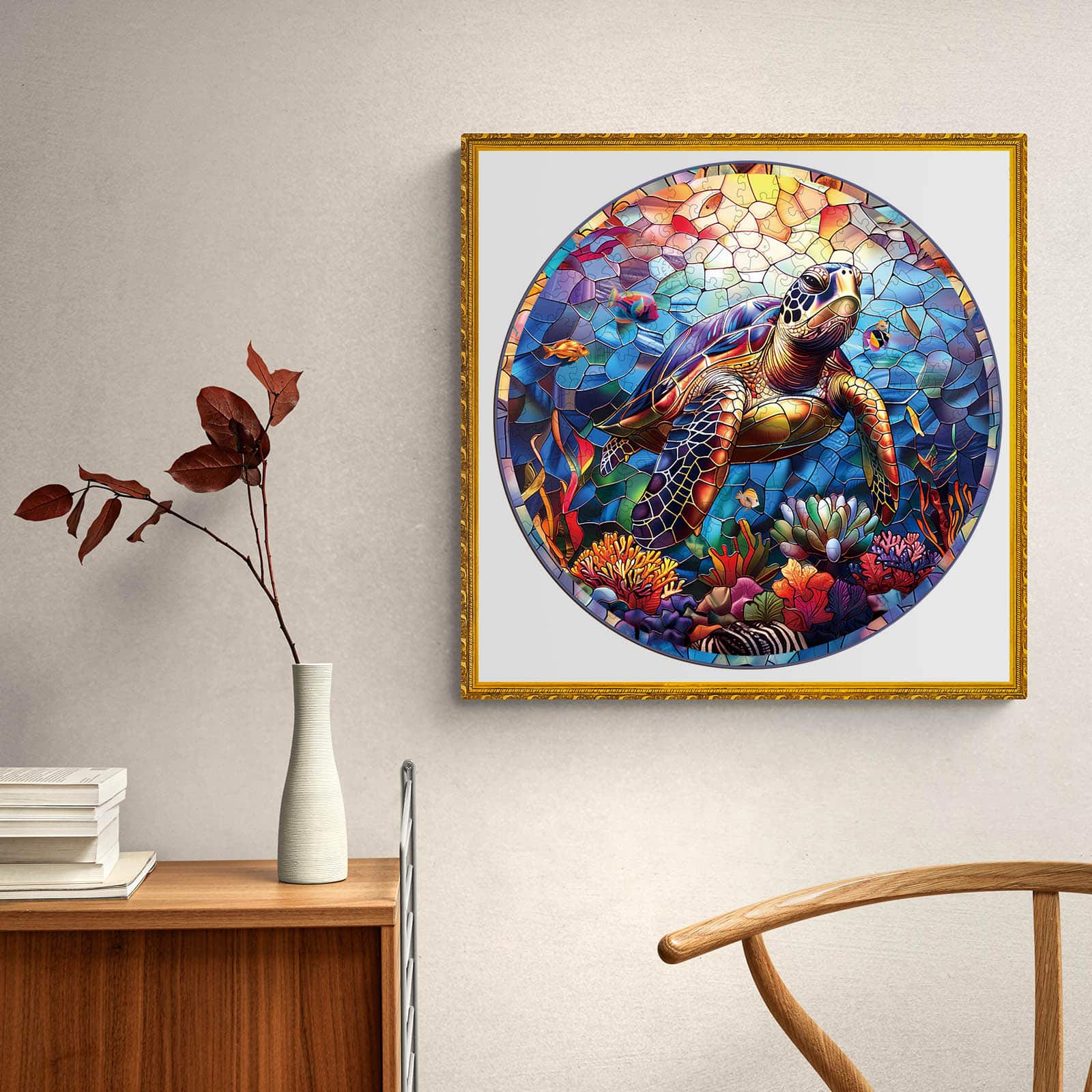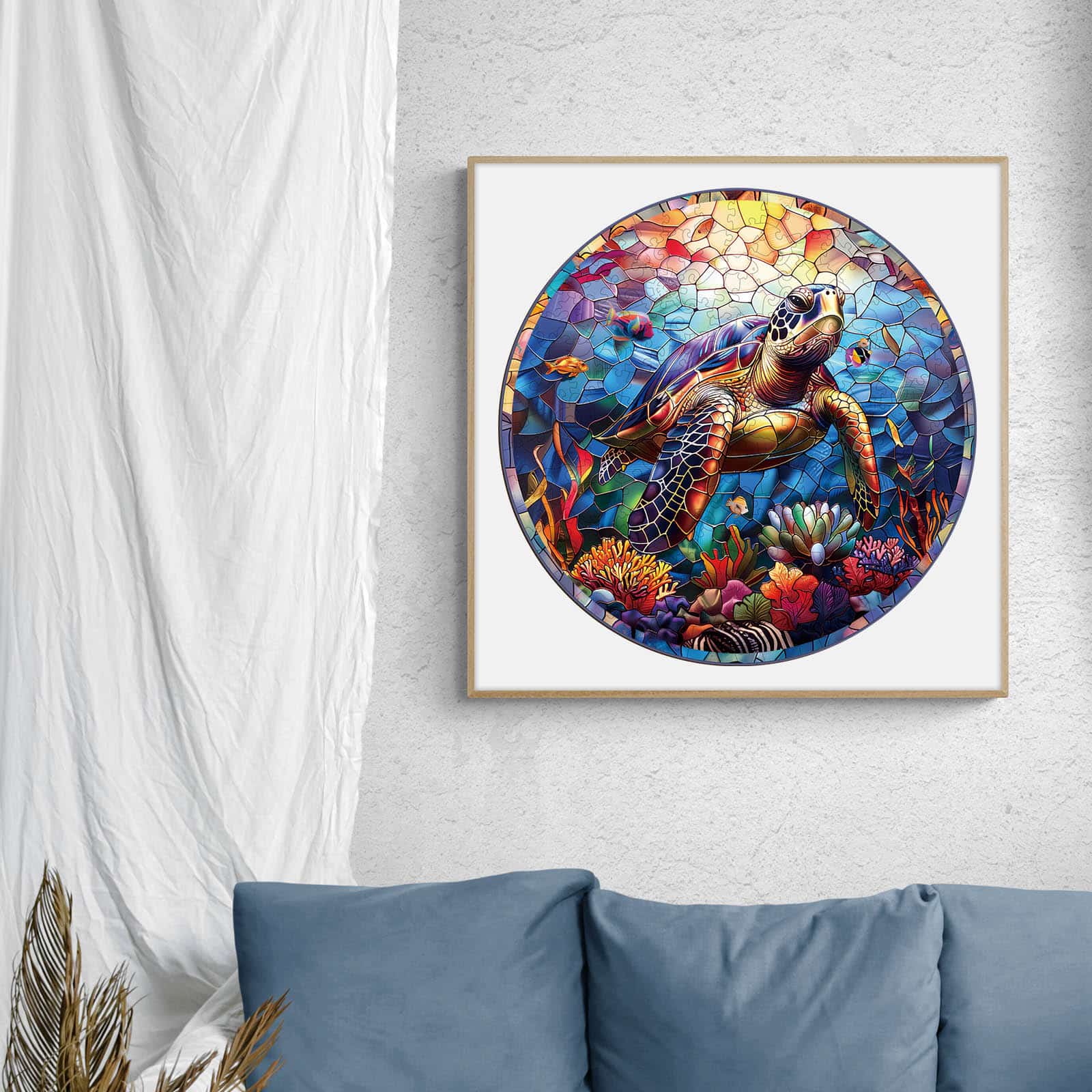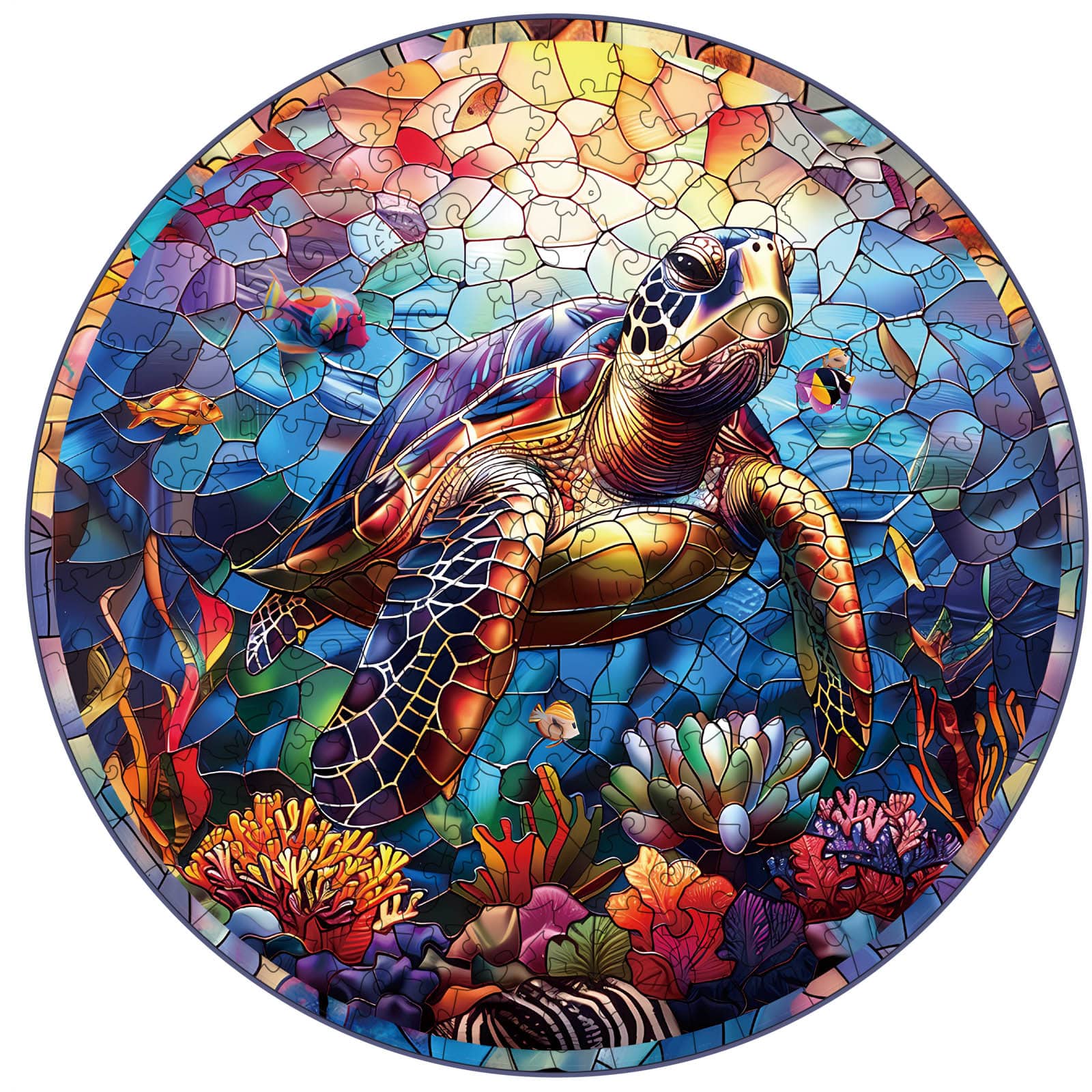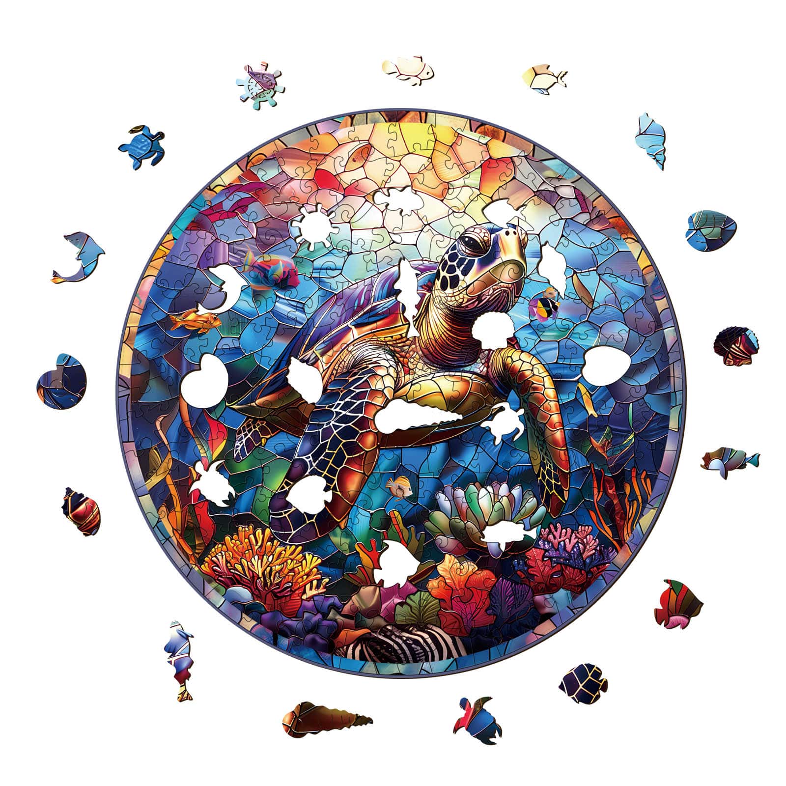Immerse yourself in the wonders of the ocean with this captivating wooden jigsaw puzzle featuring a vibrant sea turtle gliding through an underwater paradise. Each intricately cut piece forms a stunning scene filled with colorful corals, tropical fish, and the shimmering blue of the sea. Crafted from premium wood for durability and precision, this puzzle offers both relaxation and challenge. Perfect for nature enthusiasts and puzzle lovers, it doubles as a beautiful decorative piece once completed.