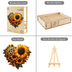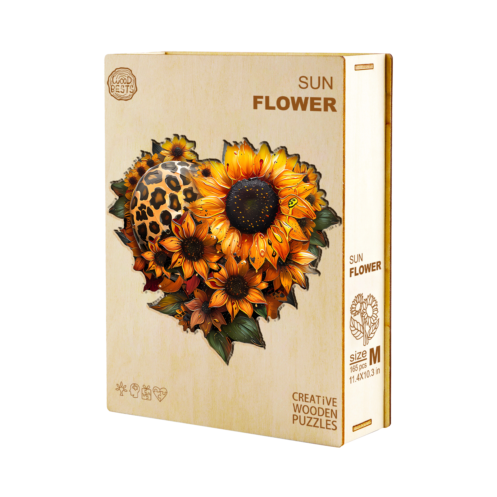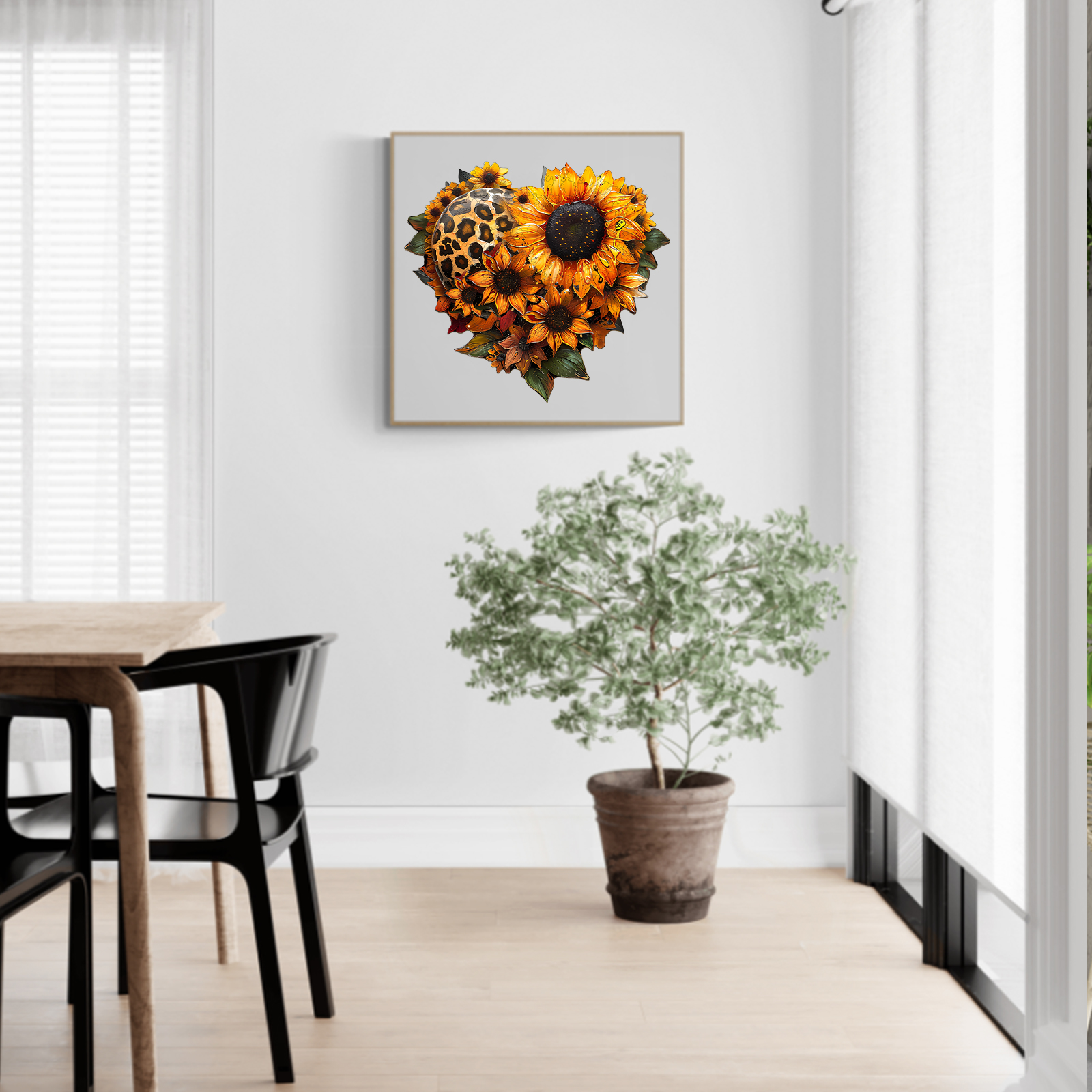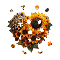 Brighten your day with the vibrant charm of this Kaayee Wooden Puzzle, featuring a bold heart-shaped design filled with radiant sunflowers and a touch of wild leopard print. Crafted from premium eco-friendly wood, each laser-cut piece fits seamlessly to form a striking composition that blends nature’s warmth with fierce personality. The vivid yellow and orange petals, lush green leaves, and eye-catching animal pattern make this puzzle a feast for the eyes and a joy to complete. Perfect as a creative gift or a unique decorative piece, it brings sunshine and style into any room.