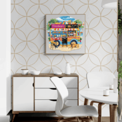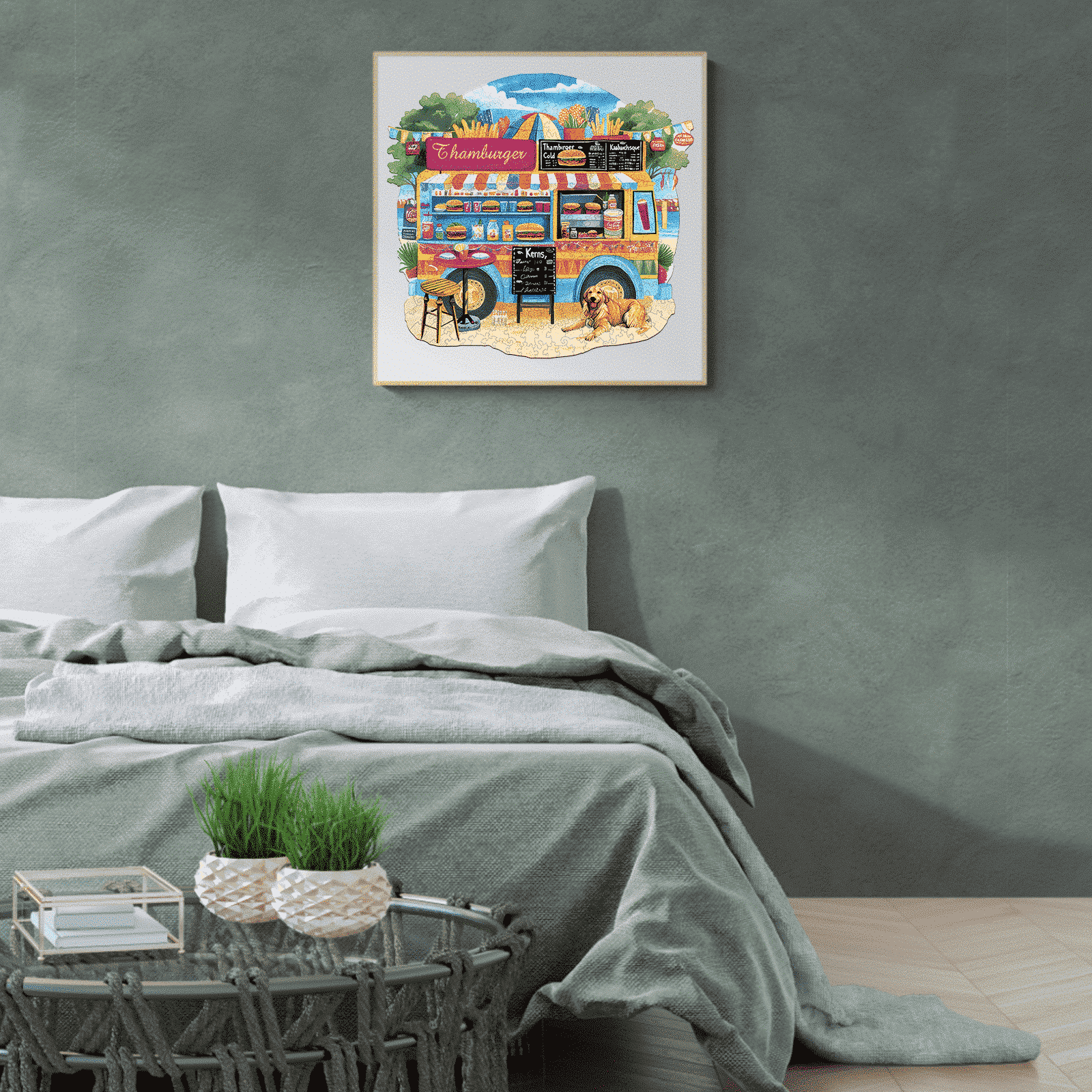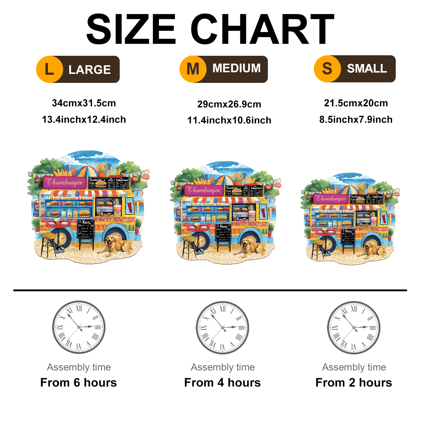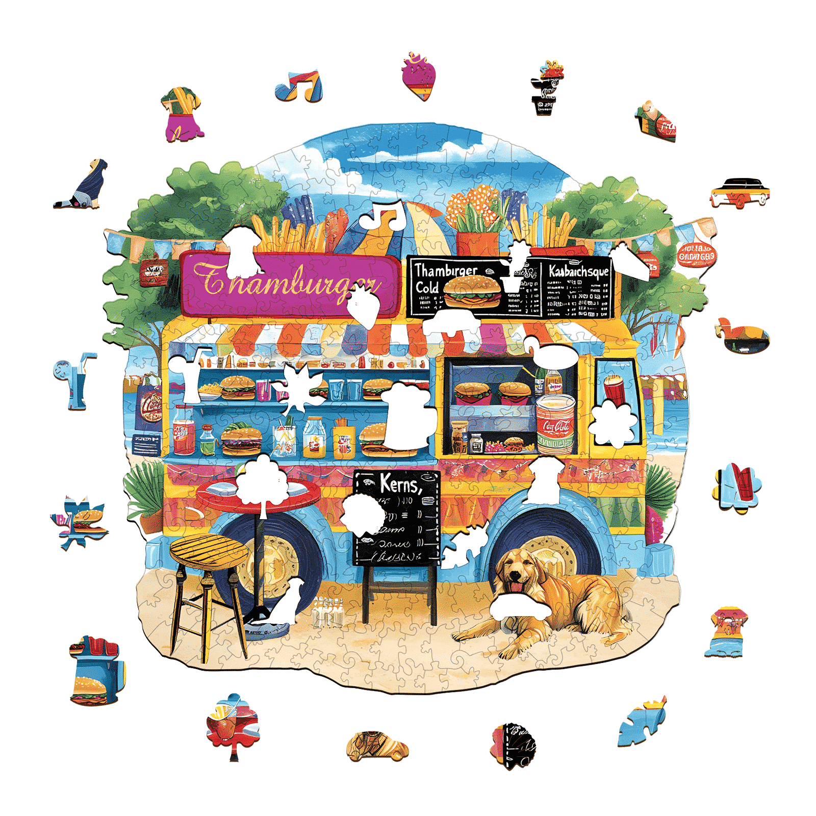 Experience the joy of puzzle-solving with our premium wooden jigsaw puzzle, “ThamBurger Fun.” This intricately detailed design showcases a colorful food truck surrounded by a delightful outdoor setting, complete with fragrant burgers, refreshing drinks, and a friendly dog. Perfect for puzzle enthusiasts, this 300-piece masterpiece provides a challenging yet enjoyable experience. Perfect for family game nights, birthdays, or as a thoughtful gift for puzzle lovers of all ages.