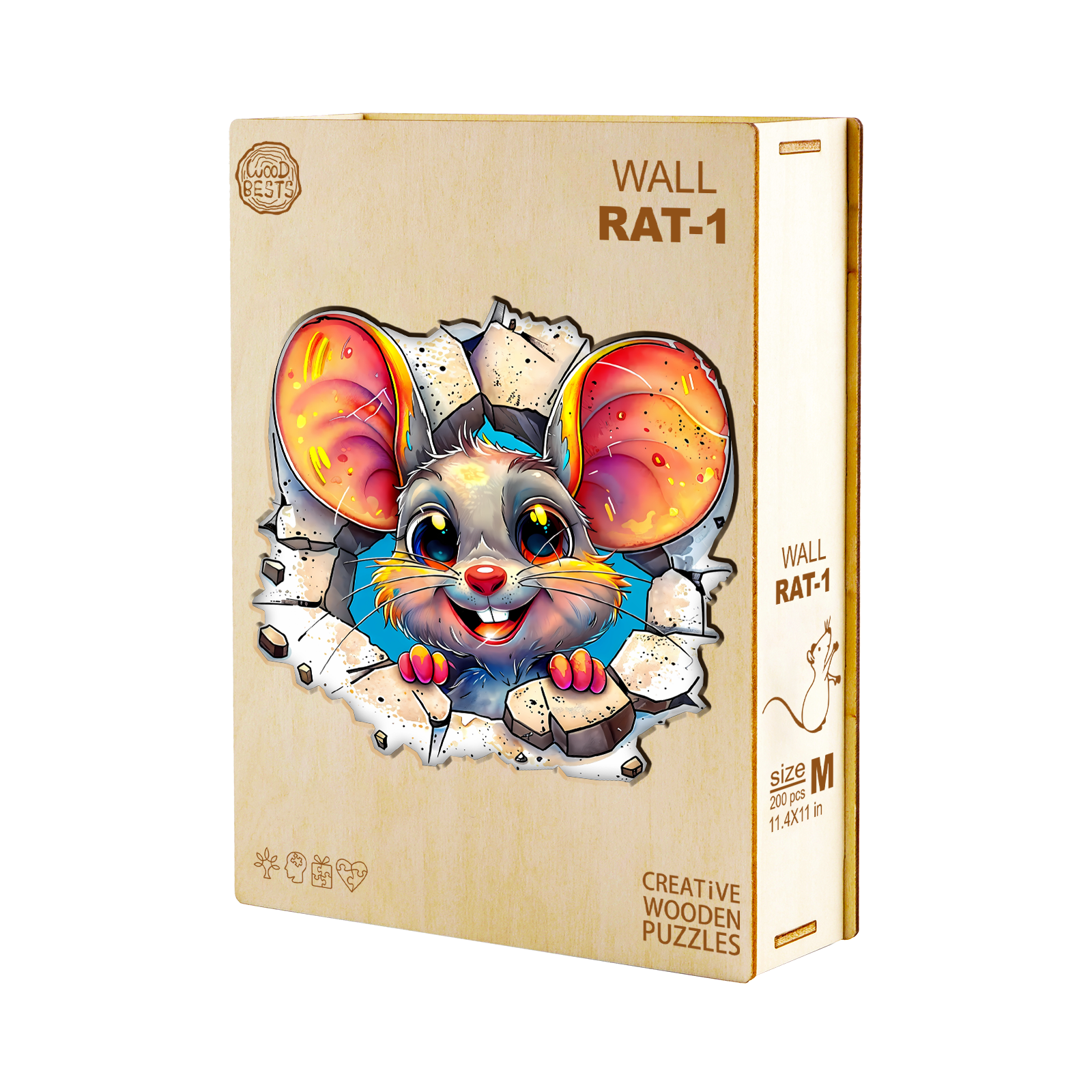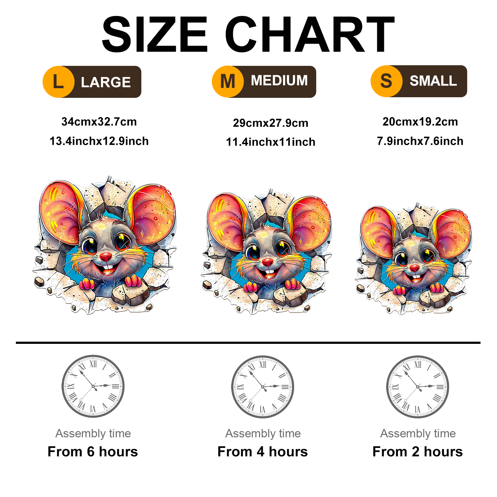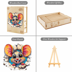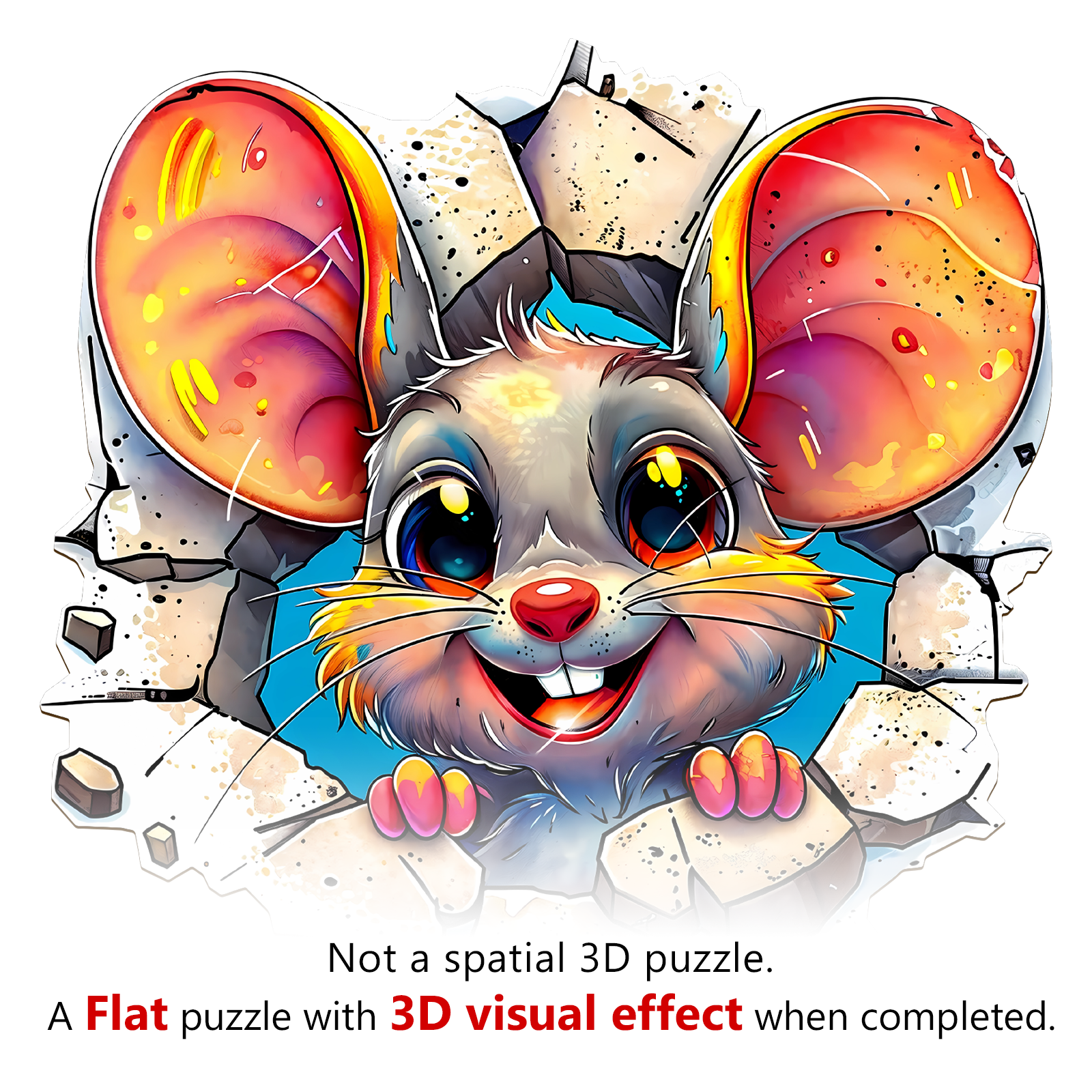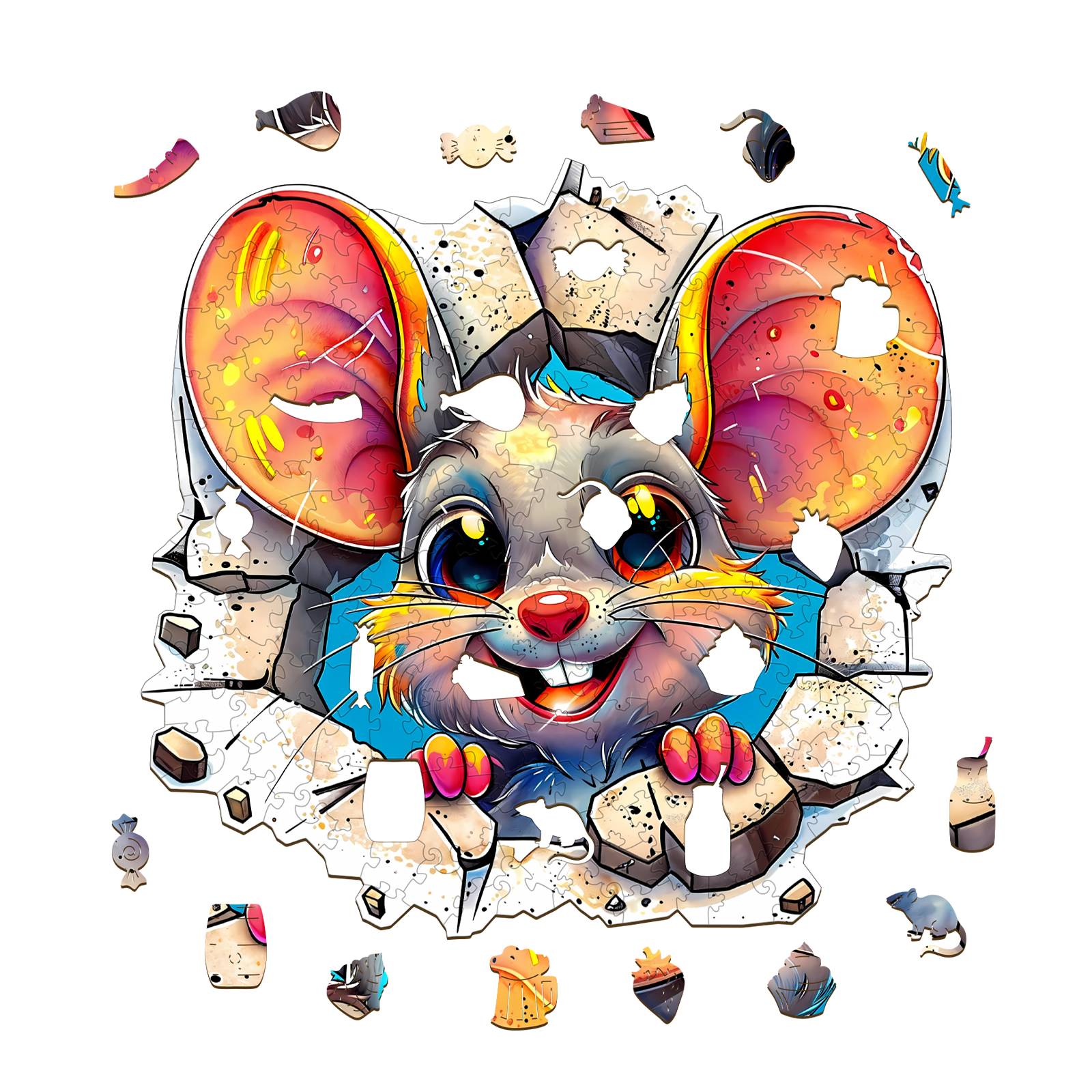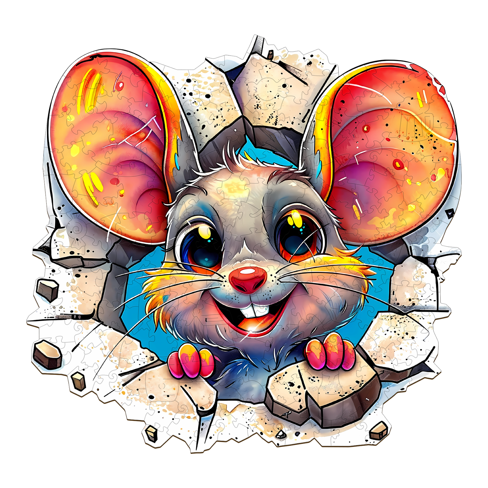 Brighten your puzzle collection with this adorable wooden jigsaw puzzle featuring a cheerful mouse bursting through a cracked wall! Designed in a vivid cartoon style, this puzzle combines playful charm with artistic detail. Each piece is laser-cut from high-quality wood for a perfect fit and lasting durability. The vibrant colors, large expressive eyes, and whimsical scene make it ideal for kids and adults alike. Whether for relaxing solo time, fun with the family, or a creative gift, this puzzle is sure to bring joy and a splash of color to any puzzle enthusiast’s day. Perfect for framing after completion!