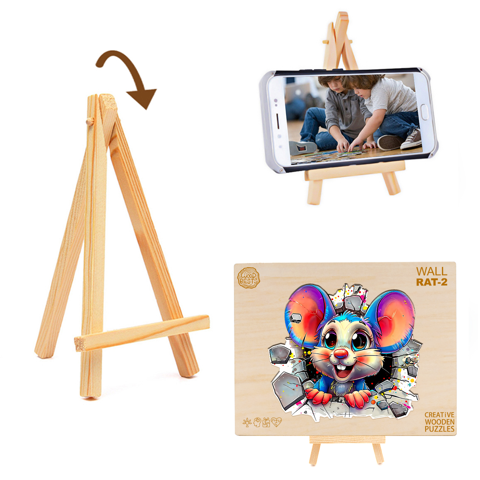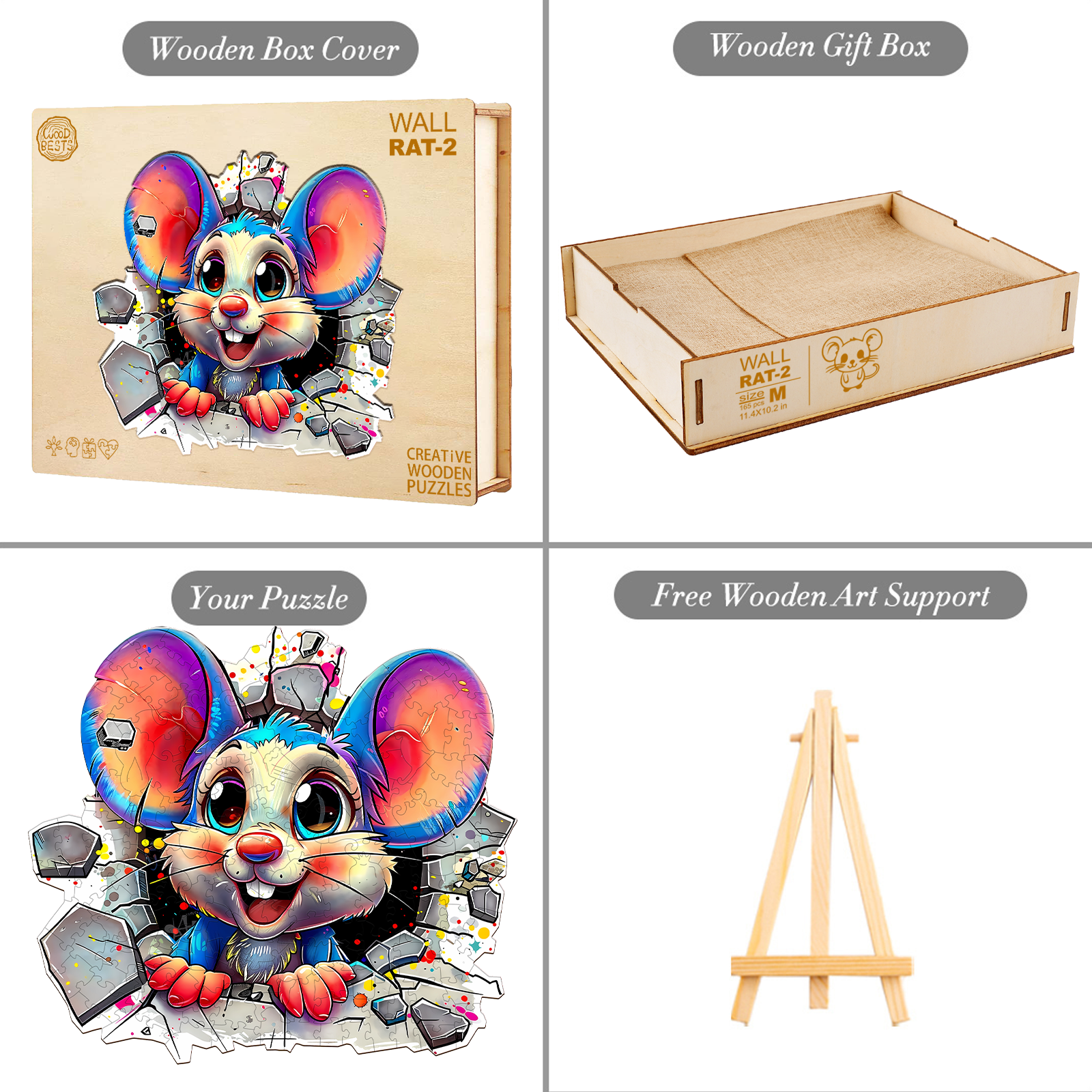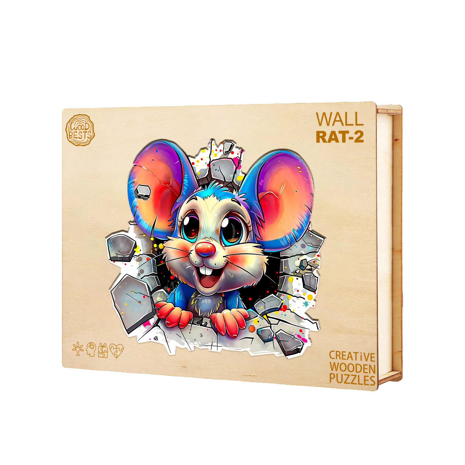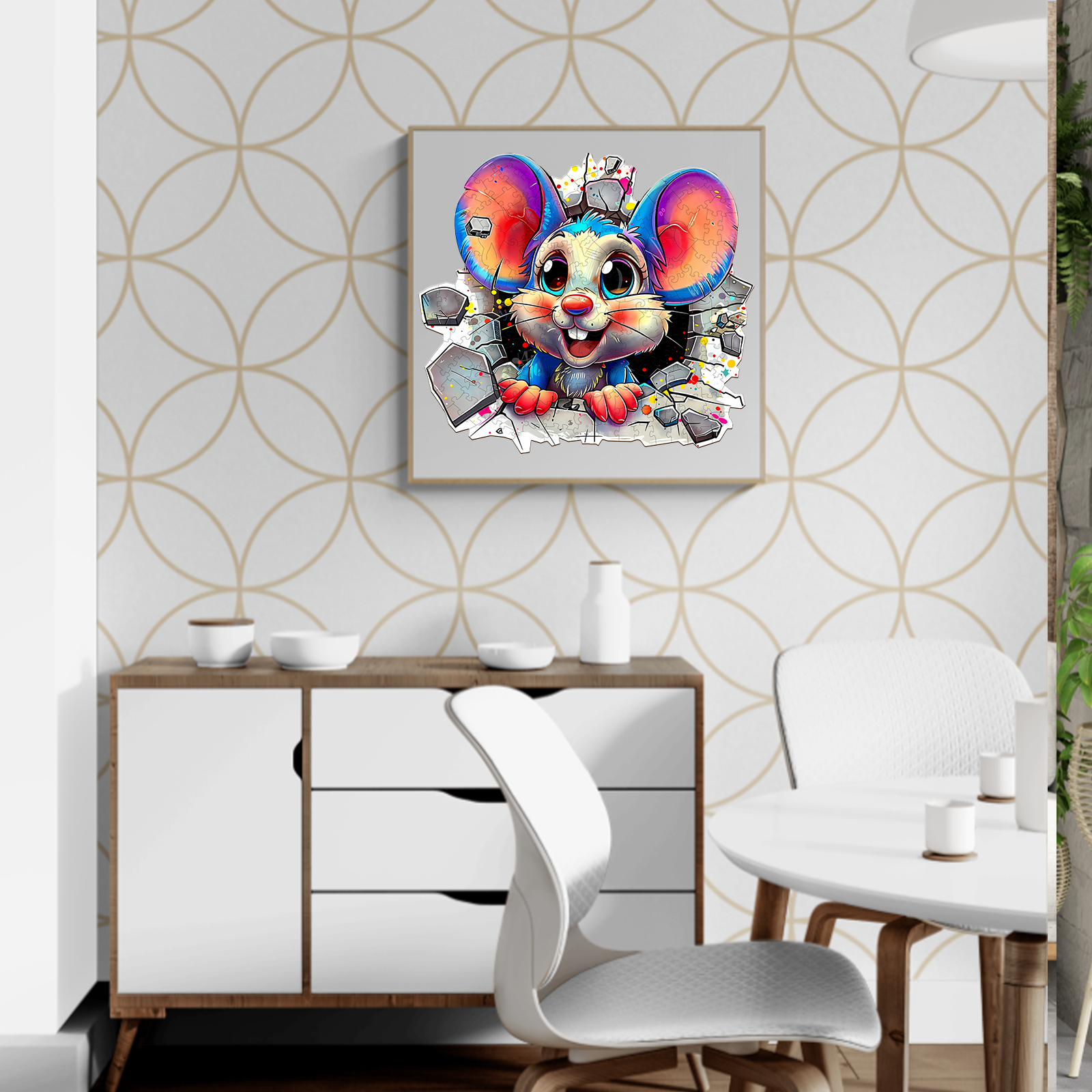 Brighten your day with this delightful Kaayee Wooden Puzzle featuring an adorable cartoon mouse bursting through a wall with vibrant energy! With its oversized ears, sparkling eyes, and playful expression, this whimsical character brings joy and excitement to puzzlers of all ages.