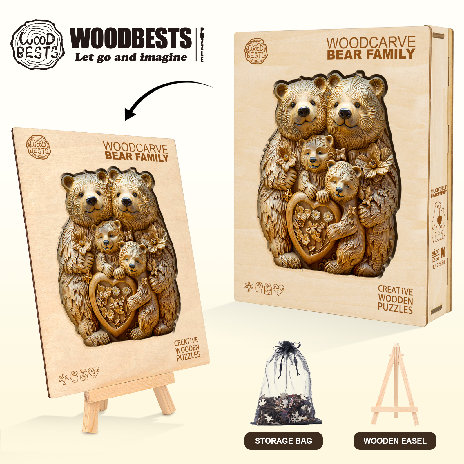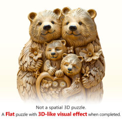 This beautiful wooden jigsaw puzzle from Kaayee depicts a heartwarming scene of a bear family. The puzzle pieces, crafted from high-quality wood, come together to form a charming image of two parent bears embracing their two cubs. The details are exquisite, with the bears’ fur carved to look lifelike and the cubs holding a heart-shaped design adorned with flowers. This puzzle is not just a fun and challenging activity, but also a wonderful piece of art that would be a perfect gift for animal lovers and puzzle enthusiasts alike.
