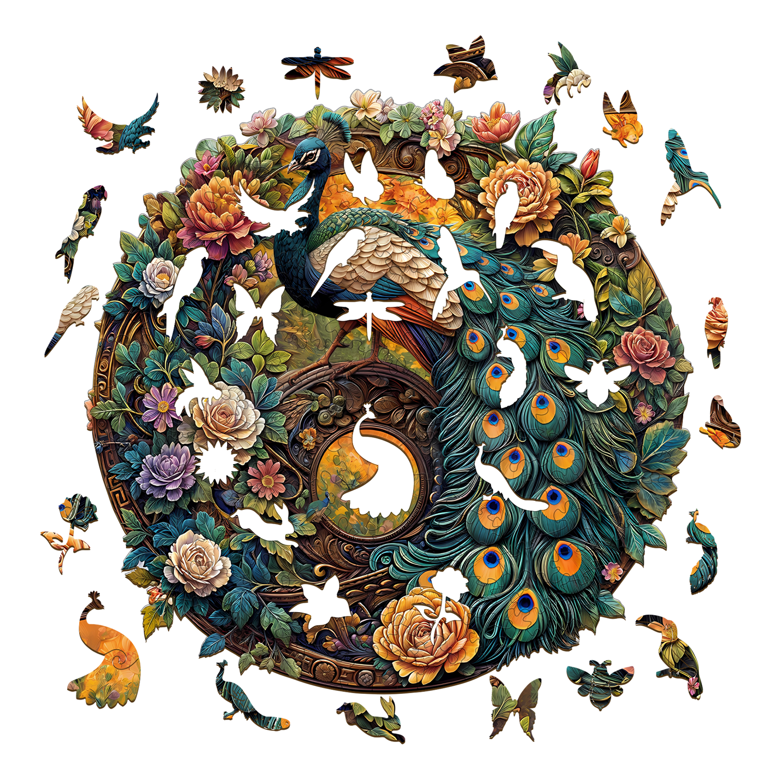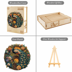 Bring elegance and tranquility to your puzzle time with the KAAYEE Wooden Peacock Puzzle. Featuring a majestic peacock surrounded by vibrant blooming flowers, this intricately designed puzzle showcases a rich tapestry of colors and textures. Each laser-cut wooden piece fits precisely, offering a satisfying and immersive building experience. Whether you’re a seasoned puzzler or a lover of fine art, this unique jigsaw is both a relaxing pastime and a stunning display piece. Perfect as a gift or a centerpiece in your collection.