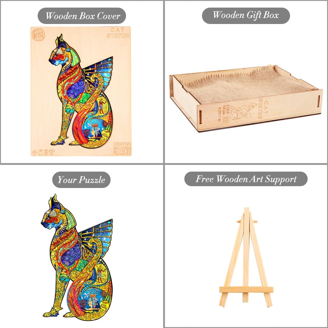 Delight in the charm of the Wooden Puzzle Cat Statue, a premium handcrafted jigsaw puzzle that doubles as a decorative masterpiece. Featuring intricately shaped wooden pieces, this puzzle assembles into a stunning 3D cat statue with elegant details. Perfect for cat lovers and puzzle enthusiasts, it offers a relaxing challenge and a unique display piece for your home or office.