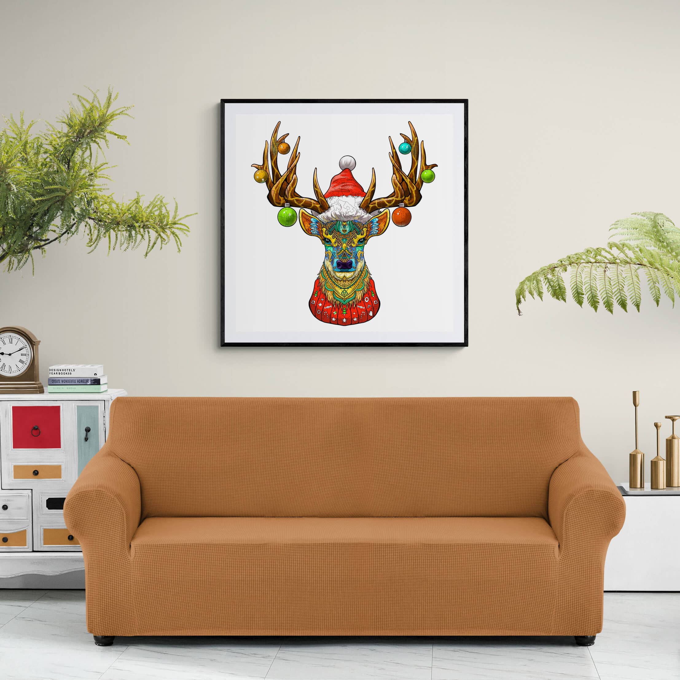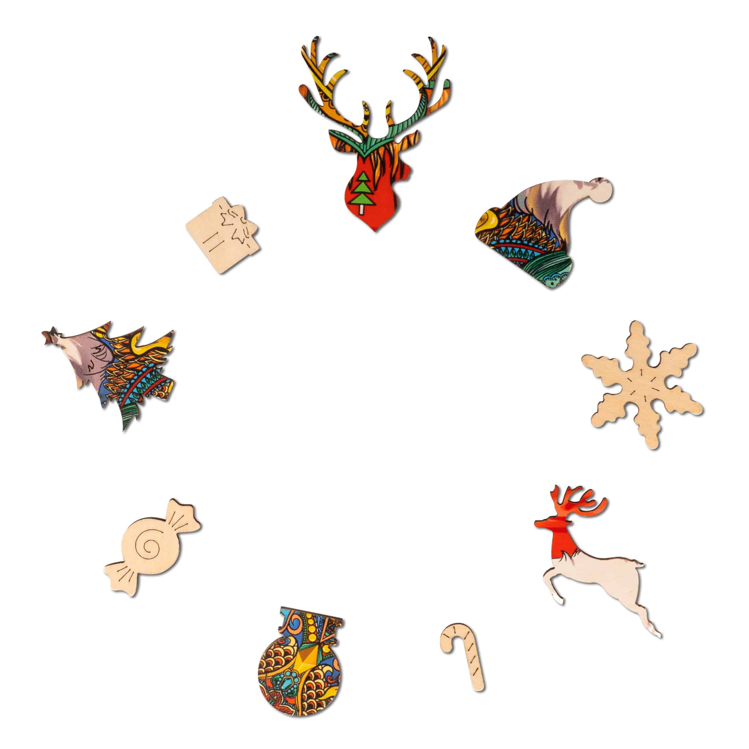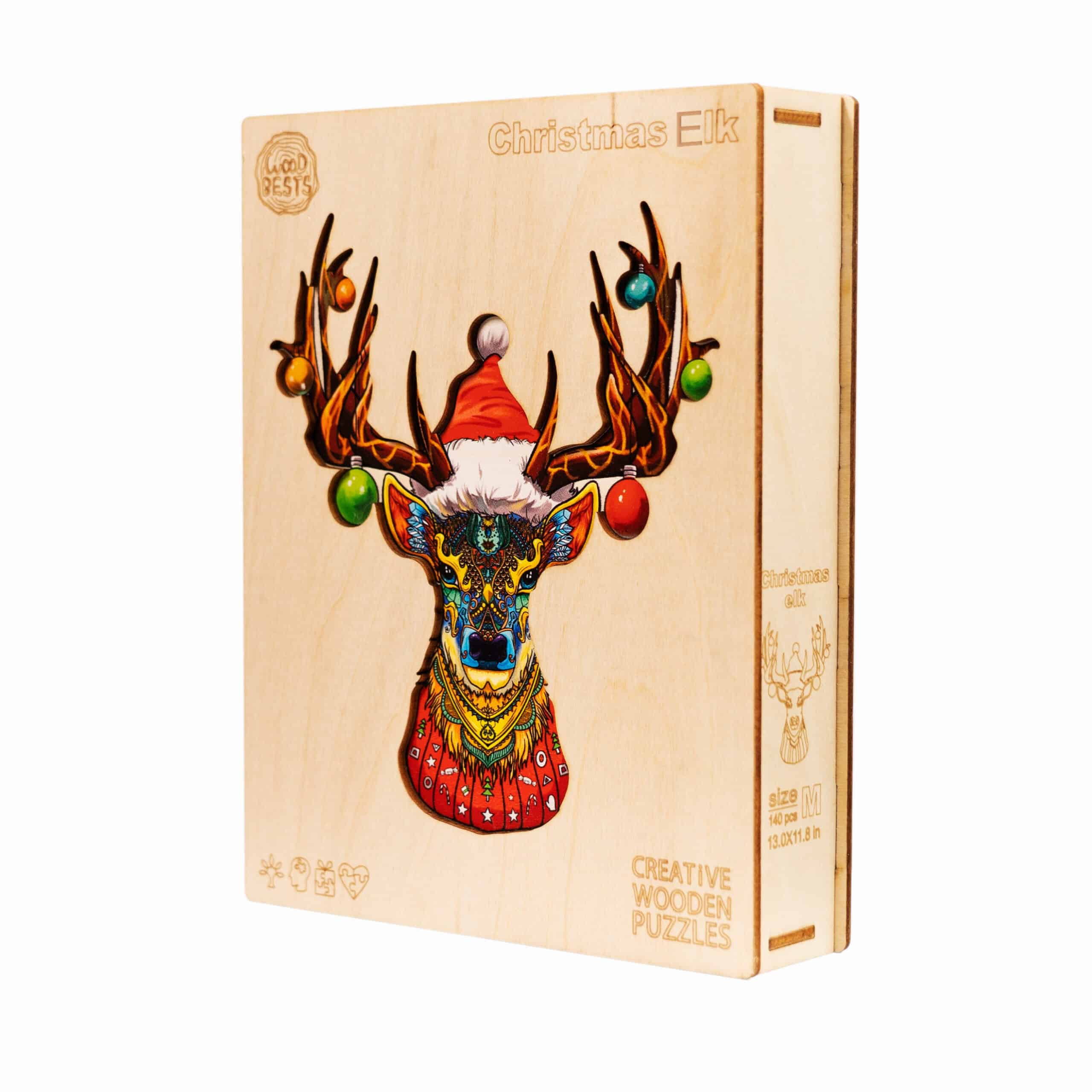 Celebrate the season with the “Christmas Elk” wooden jigsaw puzzle, a festive masterpiece featuring a colorful, intricate elk design adorned with holiday ornaments and a Santa hat. Made from high-quality wood, each piece is carefully crafted for durability and enjoyment. This 300-piece puzzle is perfect for holiday decor or a cozy family activity, adding a touch of artistic charm to your Christmas festivities.