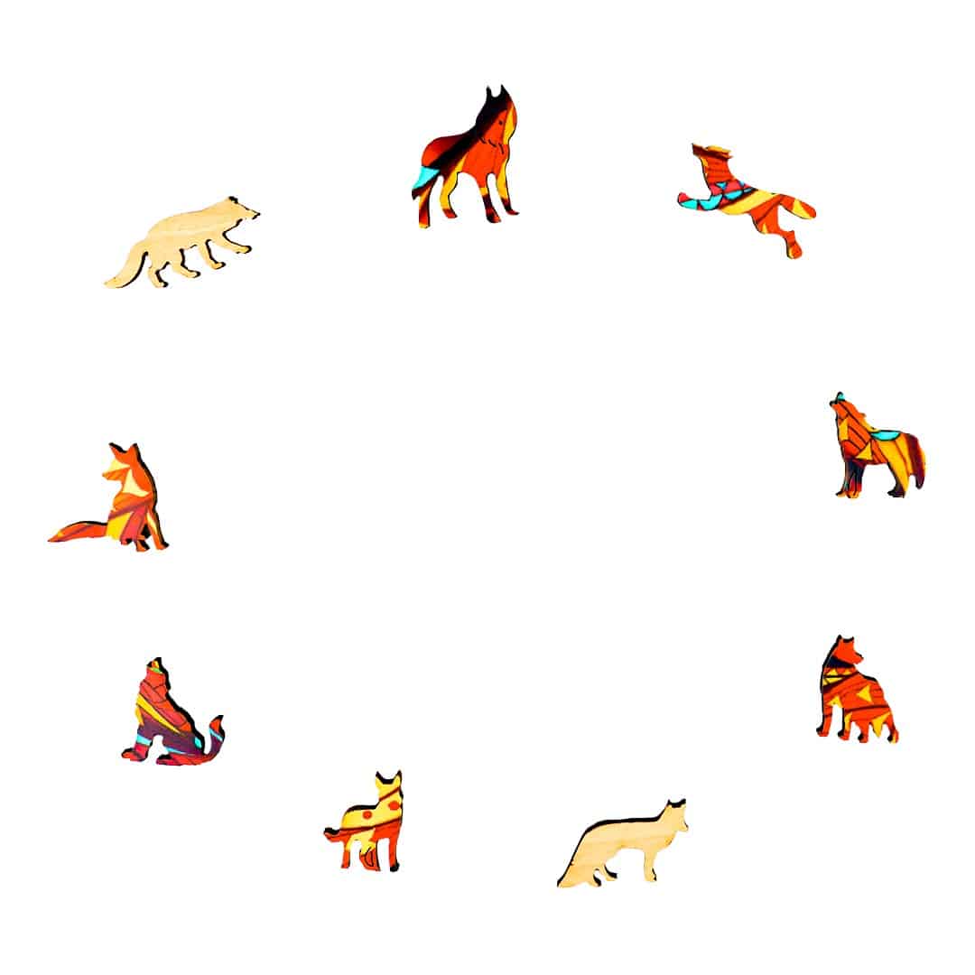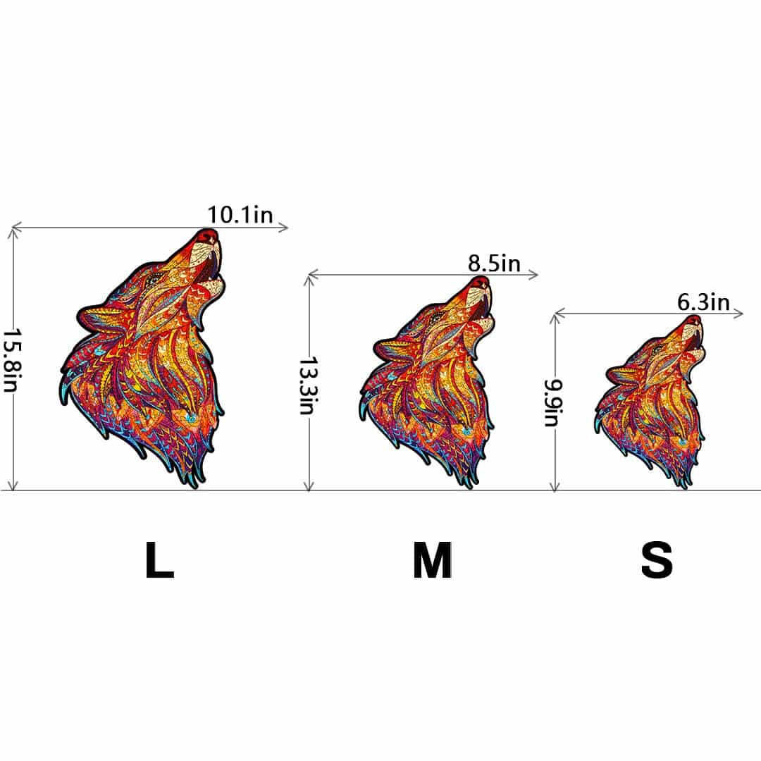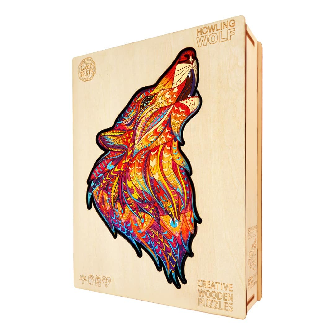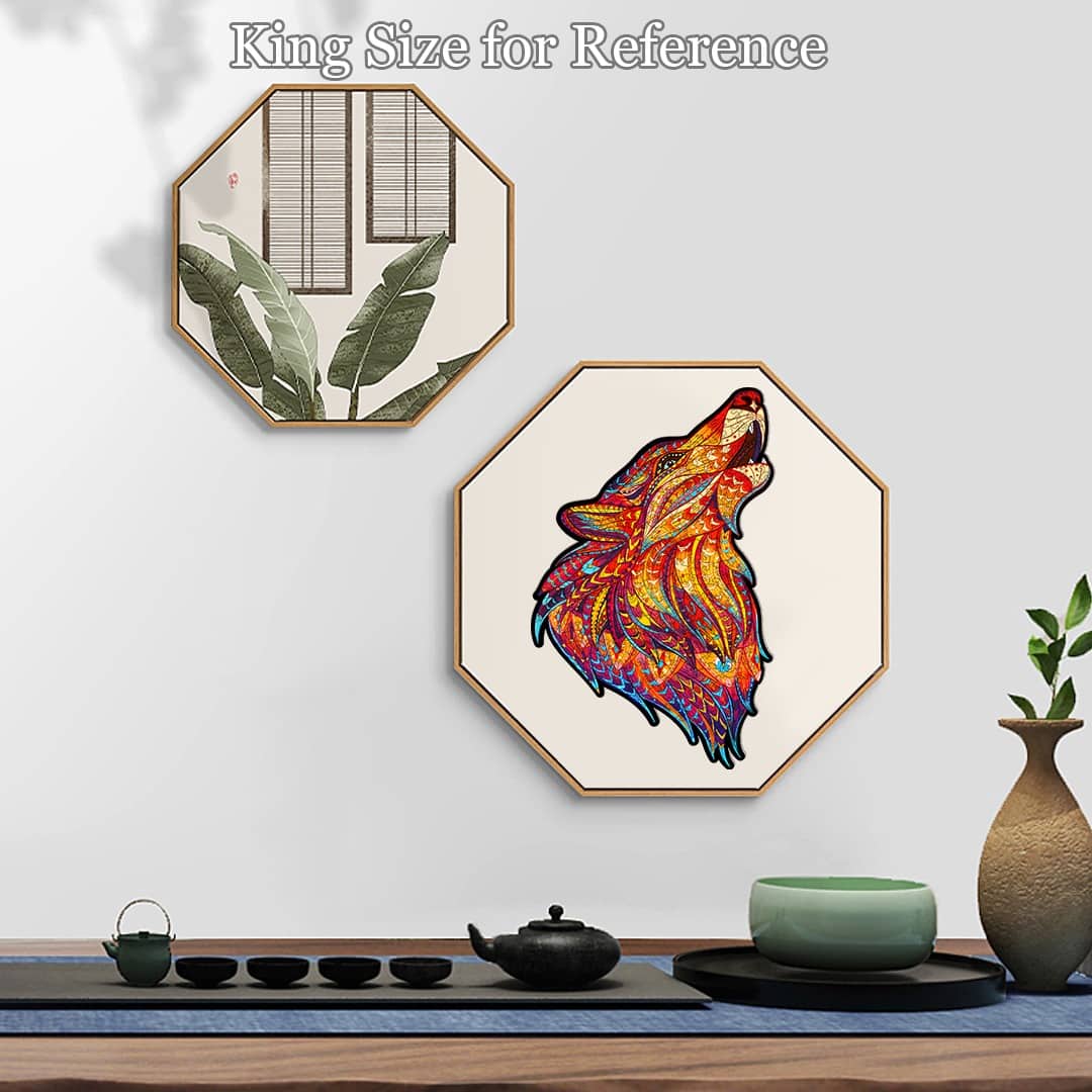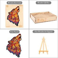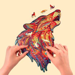 The “Howling Wolf Red” wooden jigsaw puzzle by Kaayee is a vibrant and intricately designed puzzle featuring a stunning depiction of a wolf howling against a fiery red and mystical background. Crafted from durable, eco-friendly wood, this puzzle includes uniquely shaped pieces that enhance the challenge and aesthetic appeal. It’s a perfect blend of artistry and entertainment, ideal for puzzle enthusiasts seeking a distinctive and nature-inspired theme.
