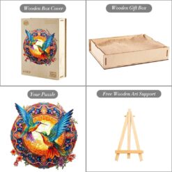 The Wooden Puzzle Hummingbird 2 is a distinctive jigsaw puzzle that artfully combines the elegance of hummingbirds with the symbolism of the Chinese Yin Yang pattern, resulting in a piece that exudes mysterious beauty.