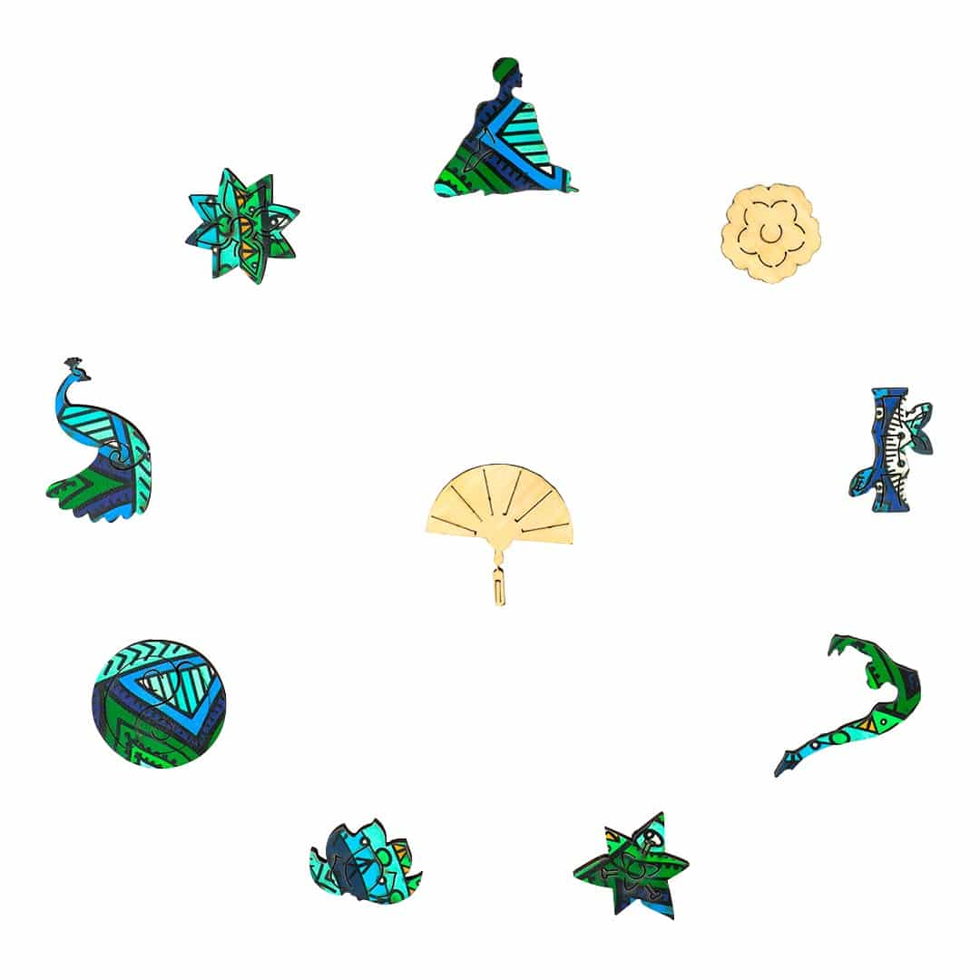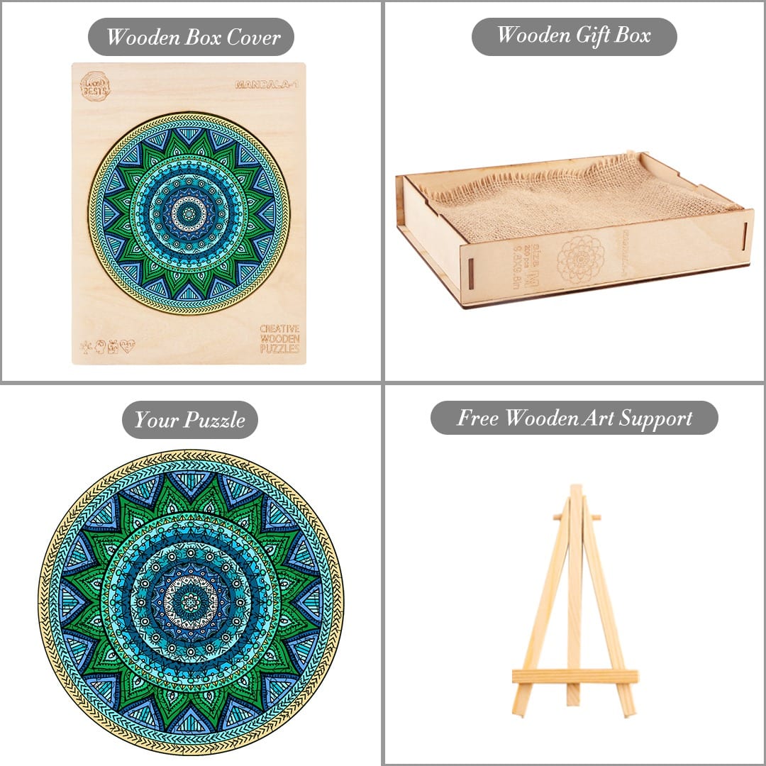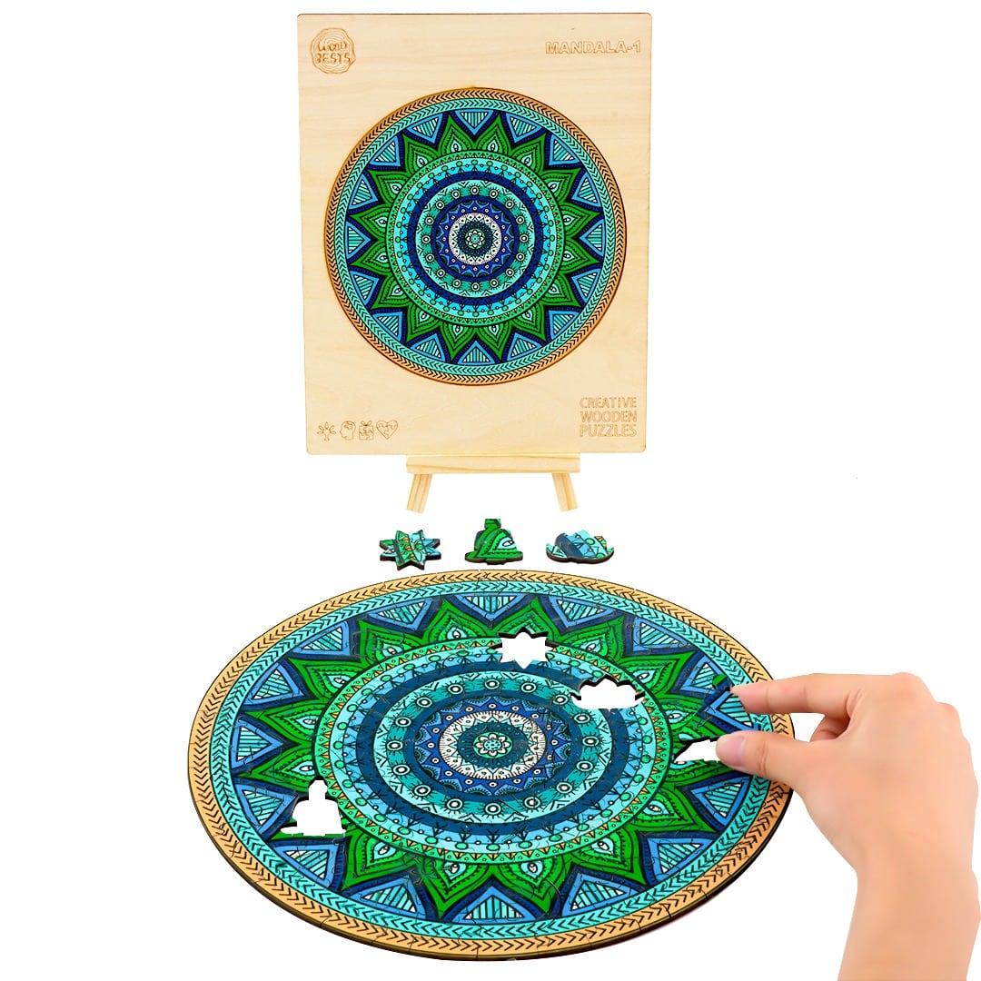 The **Wooden Puzzle – Mandala 1** from Kaayee is a premium jigsaw puzzle crafted from high-quality wood. Featuring a stunning and intricate mandala design, it offers vibrant colors and detailed patterns that engage both the mind and senses. With uniquely shaped pieces, this puzzle provides a challenging and meditative experience, making it perfect for puzzle enthusiasts and those seeking a creative, mindful activity. Ideal as a gift or for personal relaxation, it combines artistry and craftsmanship in a durable, eco-friendly format.
