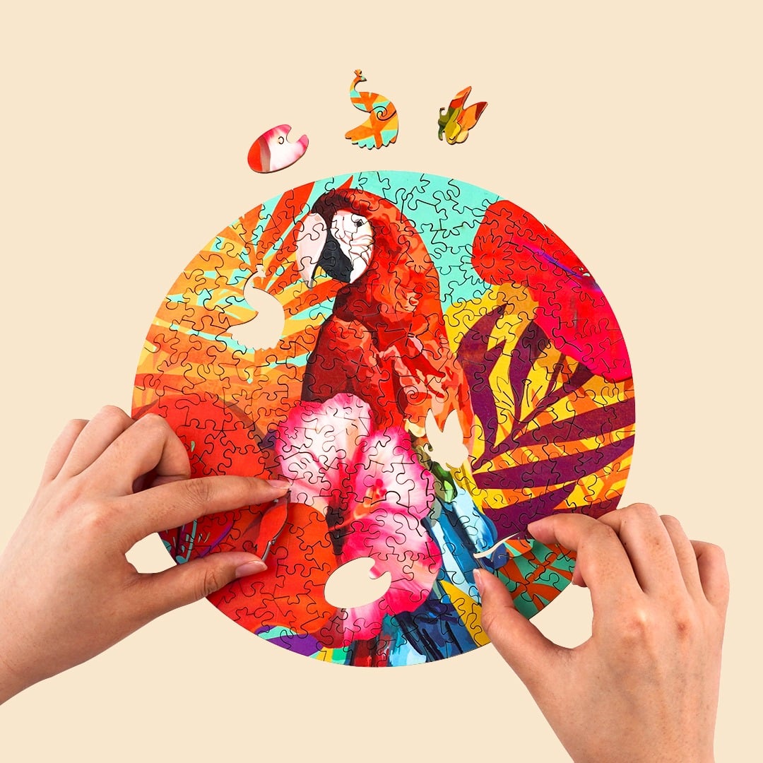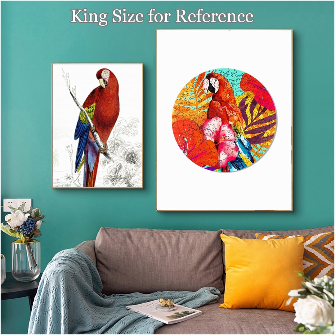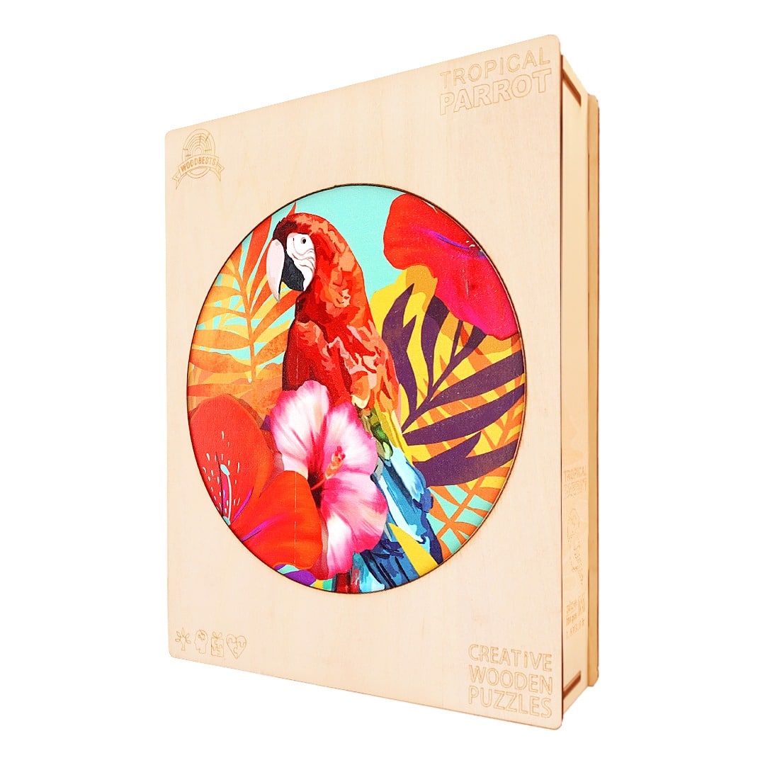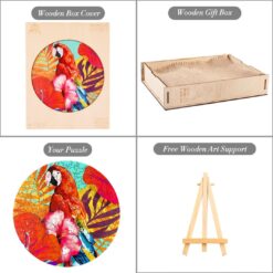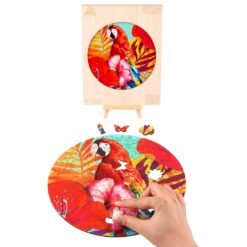This is a vibrant and intricately designed jigsaw puzzle crafted from premium wooden pieces. Featuring a colorful parrot surrounded by lush tropical foliage, this puzzle offers a visually stunning and engaging challenge. Its durable construction ensures long-lasting enjoyment, making it an excellent choice for puzzle enthusiasts and art lovers alike. Ideal as a gift or for personal relaxation, this puzzle combines beauty and craftsmanship in a delightful package.