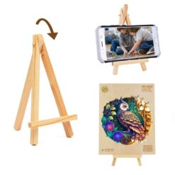 My wife loves puzzles and owls, so I gifted this to her for her birthday this year. She really loved it, and I must say: I do too. It comes in a solid box that I think is HDF, and all the pieces are wrapped in a wide strip of frayed edge burlap. It’s a great presentation; nice aesthetic! Like all puzzles, the lid has the image of the completed puzzle to guide you along, but this Unidragon comes with a kickstand so you can prop the lid up to view during assembly. Also, many of the pieces are shaped like little animals or leaves or flowers or something to do with nature, and drawn to match on the opposite side. I’ve included a pic of fox and hedgehog pieces so you know what I’m talking about.